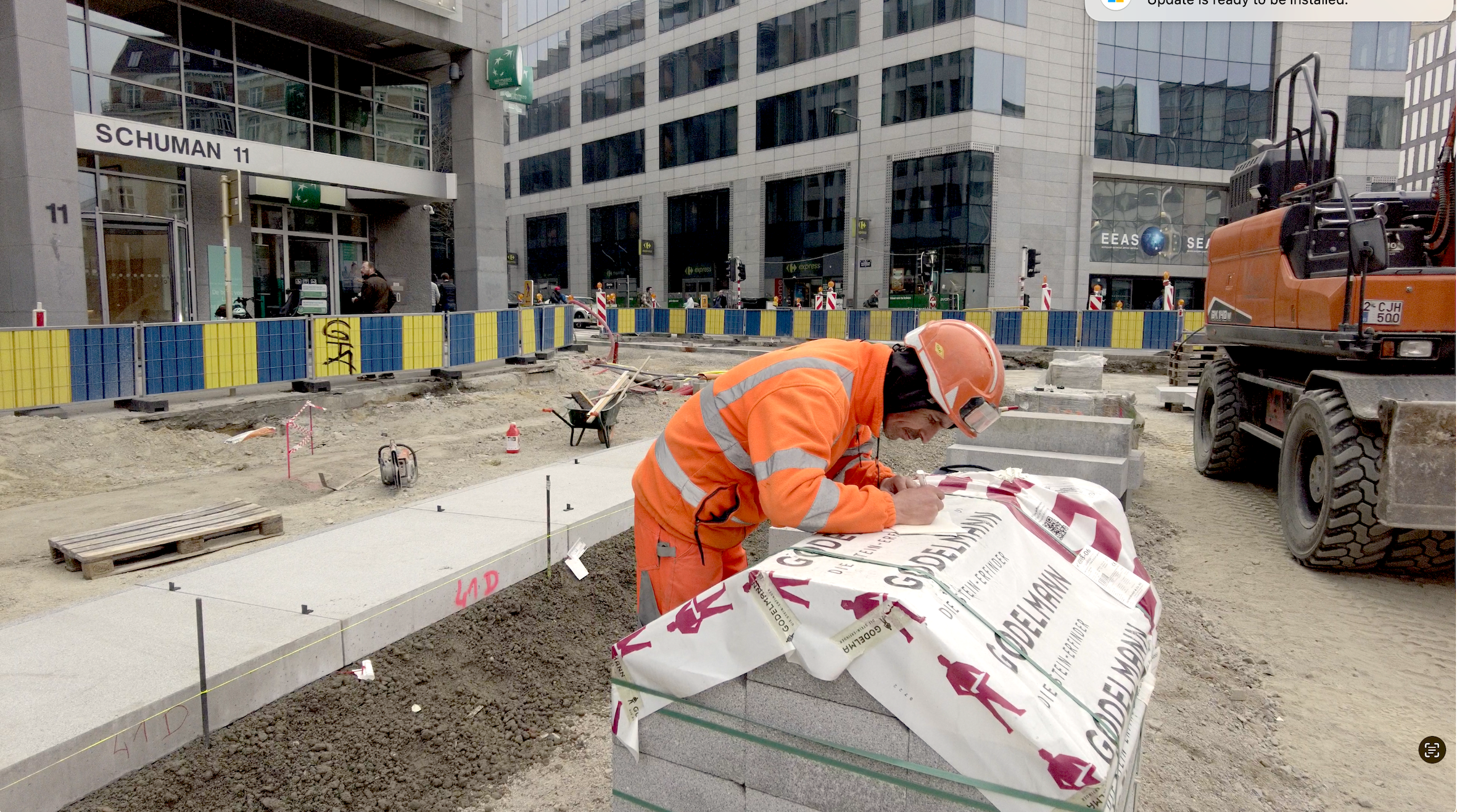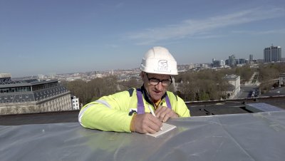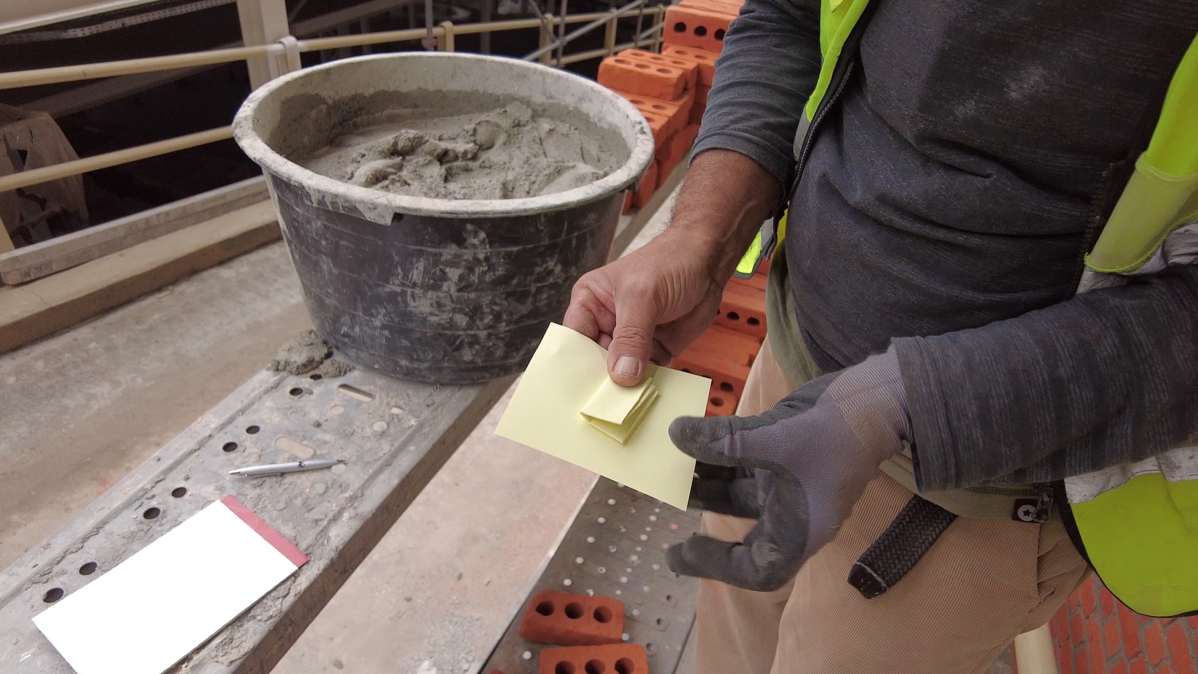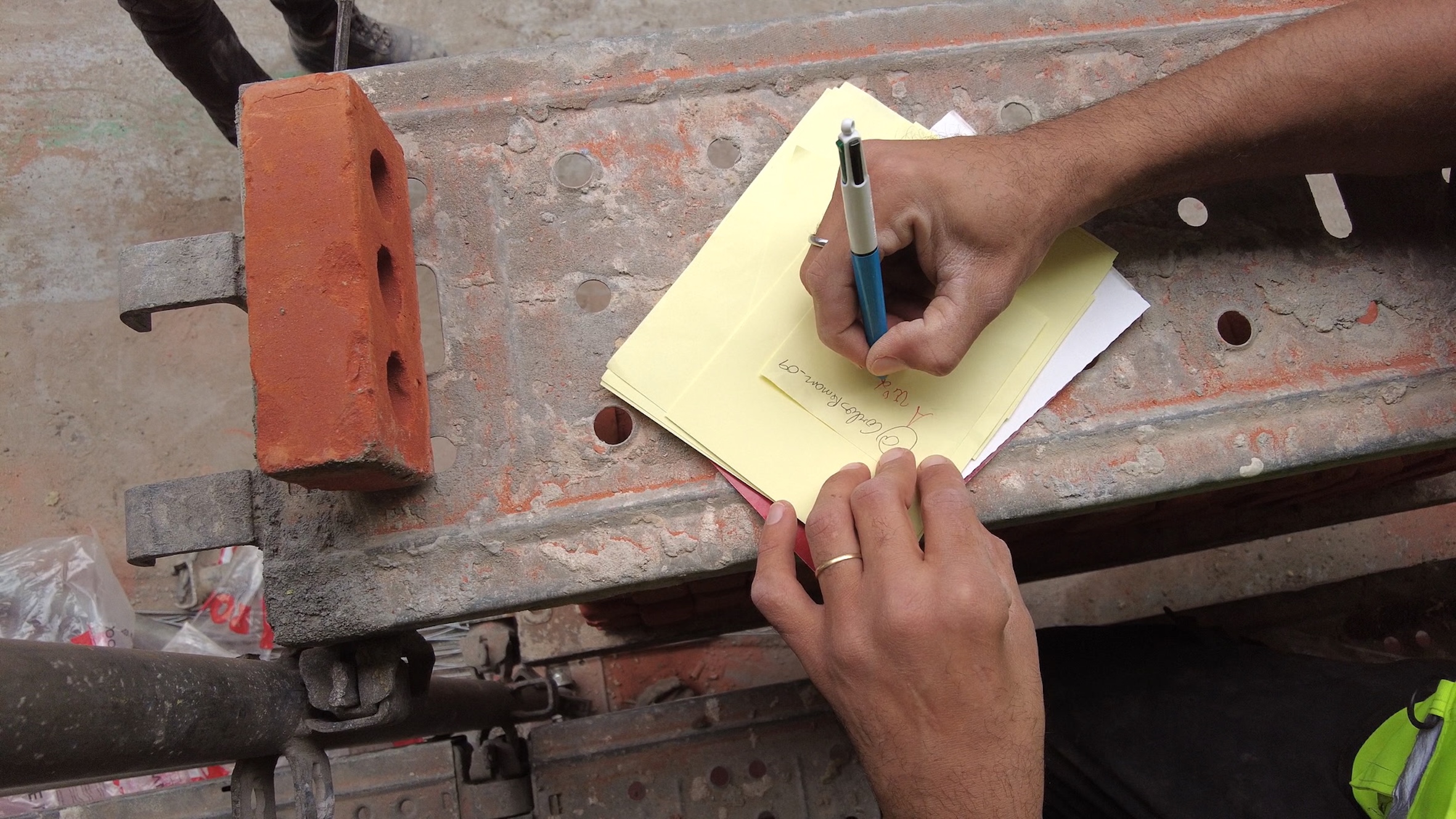 Munie d’une caméra de poche, Sarah Vanagt traverse Bruxelles et s’attarde sur ses chantiers. Elle y rencontre des ouvriers venus d’ailleurs, occupés à bâtir la ville de demain. À travers un dispositif participatif, la réalisatrice les invite à écrire un vœu et à le glisser dans les interstices de l’architecture. Le geste est presque invisible, mais il transforme silencieusement le regard porté sur la ville. Derrière les briques, sous les pavés, dans les fondations, circulent désormais des désirs destinés à rester cachés. Entre observation et intervention, Wishful Filming montre comment une action minuscule peut néanmoins fissurer le tissu urbain et y faire entrer une pensée poétique et politique, tout en invitant le spectateur à découvrir la ville autrement. - Annagrazia Graduato